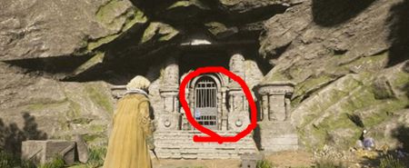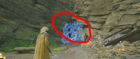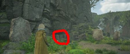 【解谜】打碎木板后进去,用[羽加迪姆·勒维奥萨]将地上石块拿起,让上面的箭头朝下,嵌入墙壁上的凹槽。