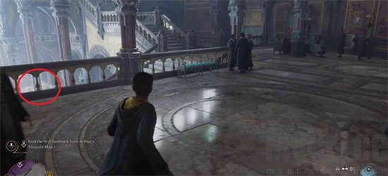 5,从第二个地标沿着雕像后的任务标记穿过门。
