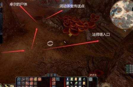 鱼人村回来往火炬蘑菇区东南走可以发现摔死的卓尔,同时该区域附近也是法师塔的入口处。进入法师塔小编更推荐随身携带轻语树花,方便又快捷