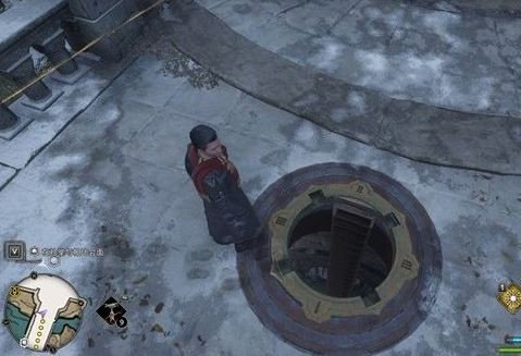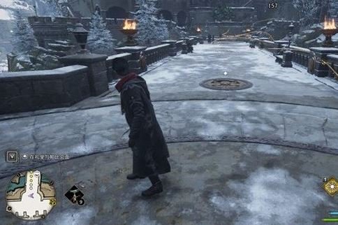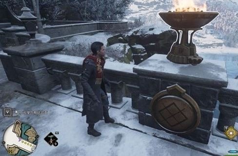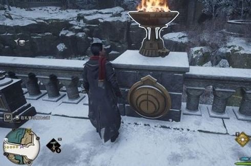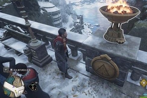 5、然后我们点燃全部的火盆后,即可来到桥上的机关门,按F键打开。
