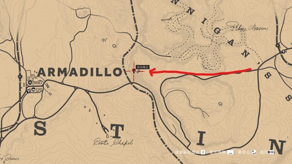 位置:犰狳镇右侧。这一块是峡谷,请按箭头方向来到悬崖,不要按导航走,不然会走错。