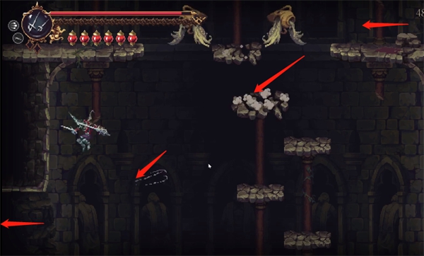 该图借助空中小石块来到左下方进入下一图,中间飞行怪避战。