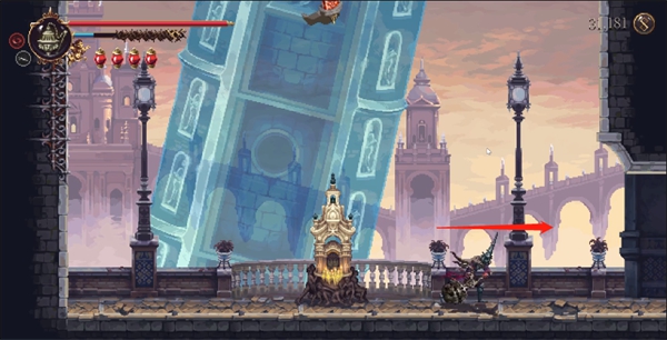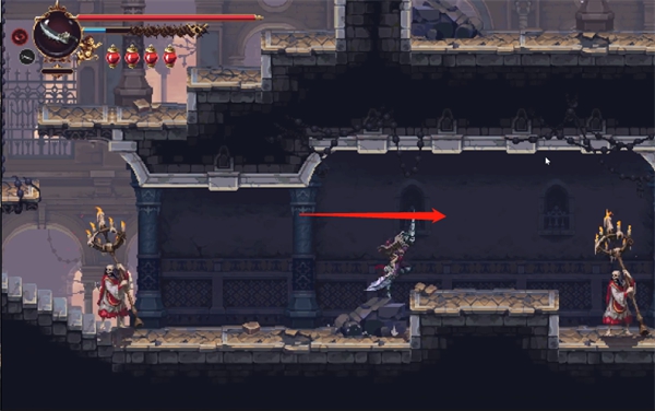 传送到这里之后,朝右走。