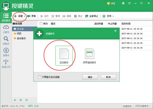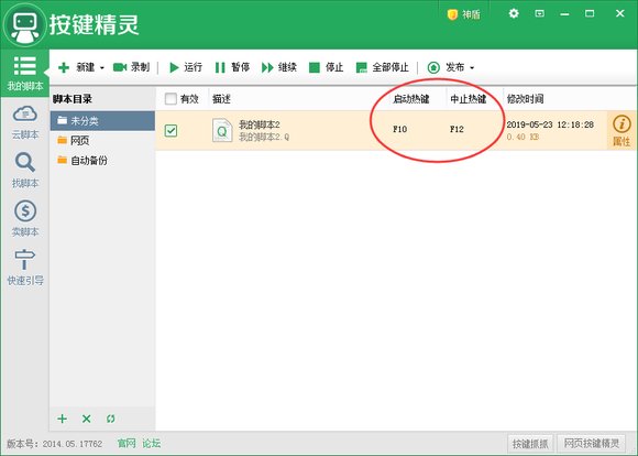 这样按键精灵就配置好了,默认启动是F10,中止是F12