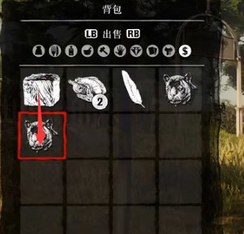 在屠夫那里卖东西,光标默认是在第一格,买三种肉是为了让完美尸体卡在第四格。