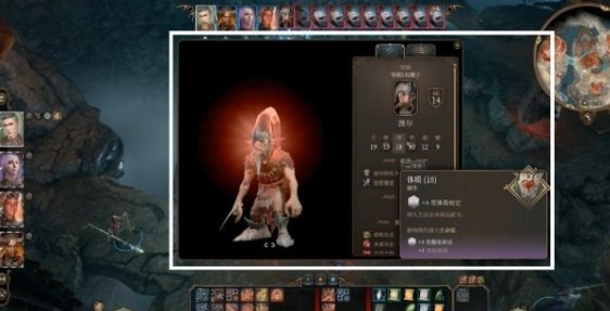 接着就开始战斗。起手卡菈克跳跃到红帽子附近形成偷袭增益。自定义刺客查看红帽子三围,可以发现,体质过18不太适合卓尔毒药。远程偷袭+副手攻击一套组合,波尔血量少了一半。接着用卡菈克常规近战普攻二连