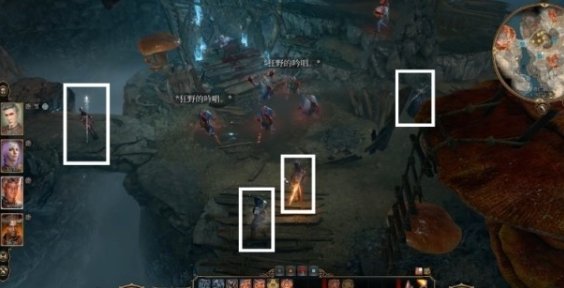 进入下个区域推荐携带影心、卡菈克和威尔作为队员。沿路朝东北下坡就能看到一群鱼人。首先将所有队员脱离队伍,影心负责站北边,威尔站南边木栅栏后,卡菈克在背后。这样站位既能保证对话中获取好感度,还能方便开战后的布局