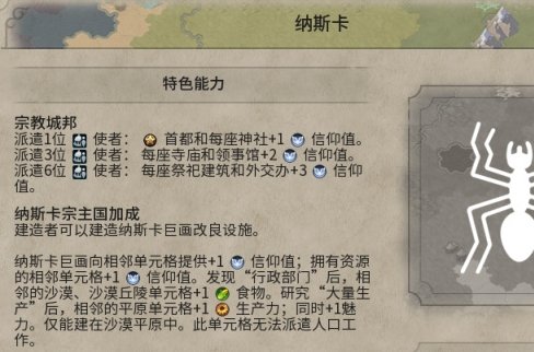 纳斯卡巨画是一个沙漠奇观,它的主要作用还是给周围产出。魅力更像是符合史实而设定的buff(确实好看),不过由于沙漠魅力来源极其有限无法种树。除非纳斯卡巨画靠着山/绿洲/自然奇观/圣地,不然根本没办法弄出惊艳(+4)地块