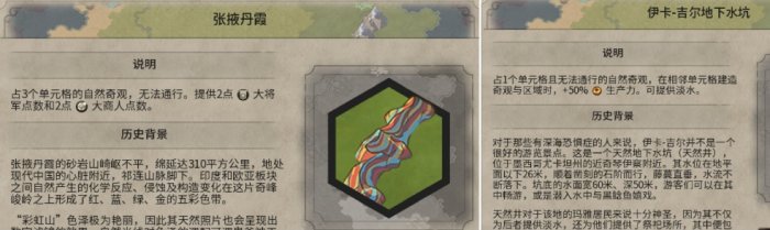 两种不带产出,自带特殊效果的奇观。丹霞站着不动也会给你大将军点。但是地下水坑就很尴尬了!因为,周围地块你得留着修区域啊!不修弄魅力的话,这就是只加魅力的白板自然奇观咯