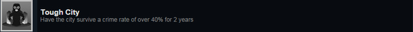 坚韧的城市:保持2年的犯罪率在40%以上。城市不能有任何教育,不然犯罪率几乎不可能达到40%,更别说持续2年了。