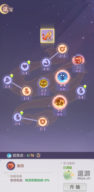 3、启灵天赋御灵增加妖灵伤害2%