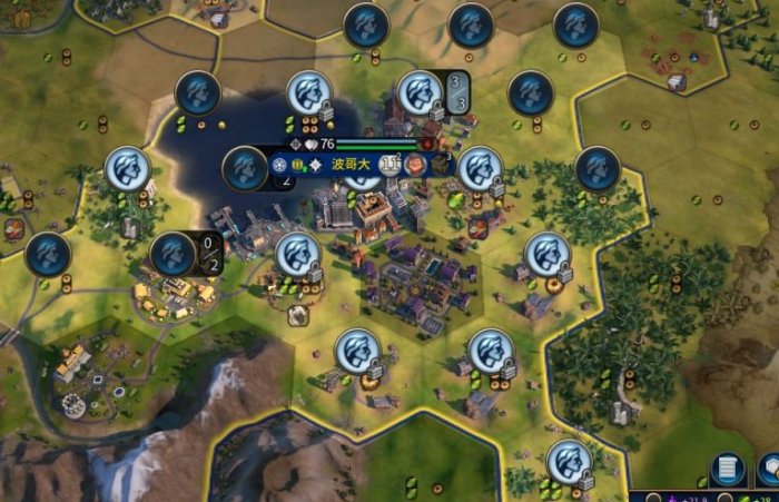 城市地块扩张主要靠:自动,金币买,奇观,文化炸弹。