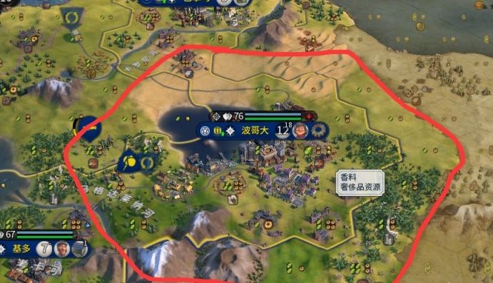 你可以改良3格外的资源,并且城市会获得资源并享受buff