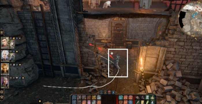 清理完军需官所在房间,沿路往西就是进入养育间的大厅过道。下方有两个锁着的门,左边在视野范围外。控制巧手型角色上前解锁左边铁门。其他成员全部在上面待命,单独让洋基妹在铁门内待命