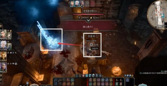 影心上前,使用召雷术攻击前方战士。由于是偷袭可以再补一个召雷术给另一个战士