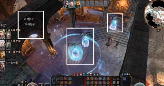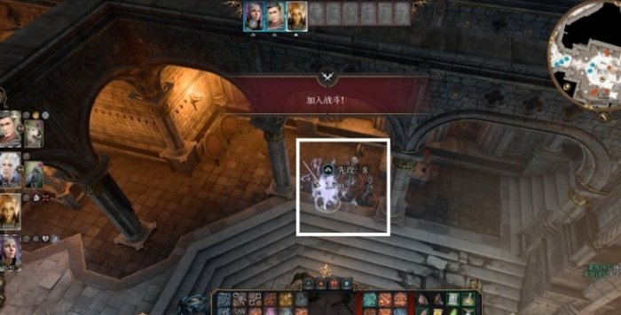 首先先全体进入隐匿。这里推荐使用隐形术戒指技能将影心进入隐形状态。10回合的隐形术即便不进入回合制也能轻松控制。接着影心走进房间,使用召雷术直接攻击中间三名洋基人开战