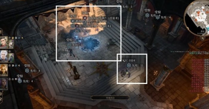 与游荡者职业隐身偷袭不同,法系职业的范围法术攻击更多目标有更高几率会让对方全体进入受惊状态。接着二次召雷术继续