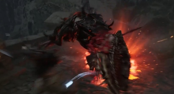 4、当boss使用斧头摩擦盾牌时,盾牌会释放火球,我们及时拉开距离即可。