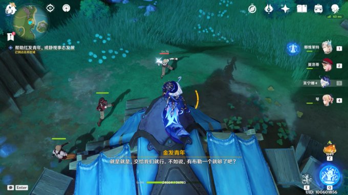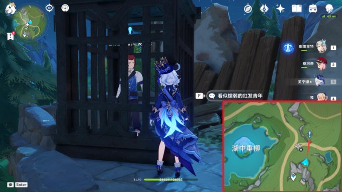 来到湖中垂柳右侧传送锚点,在任务点与看似懦弱的红发青年对话接取任务