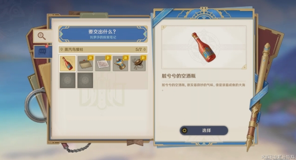 直接与小狗对话,选择【脏兮兮的空酒瓶】。