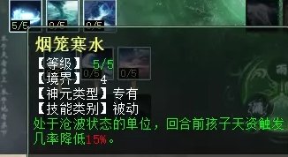 分别是:烟笼寒水(任务、PK通用,沧波可降低孩子通用天资技能触发几率),风起浪涌(PK专用,用霹雳秒或者物理攻击时,几率附加沧波效果),归之若水(PK专用,受攻击时,只要自己不倒地,就有几率给对方挂上沧波状态)