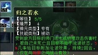 分别是:浪遏飞舟(任务、PK通用,沧波状态下几率无法被牛和被速),水波不兴(任务、PK通用,沧波状态单位对自己降低额外法术命中率),碧水青涛(任务、PK通用,沧波再次秒到有沧波状态的单位,效果加强)