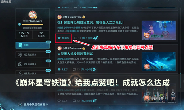 以上就是《崩坏星穹铁道》给我点赞吧!成就怎么达成的所有内容了,希望对大家有帮助,想了解更多相关游戏资讯攻略可以前往腾云网崩坏星穹铁道专区查看!