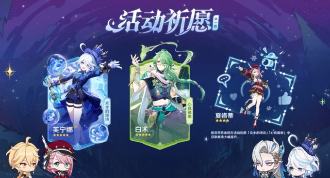 ▲4.2版本第一期卡池:芙宁娜/白术/夏洛蒂