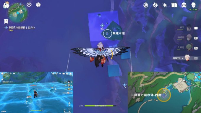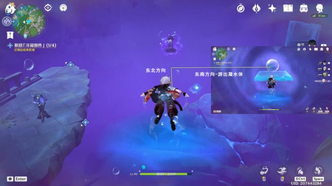 前往水道底部石柱裂缝,回收「冷凝部件」4;