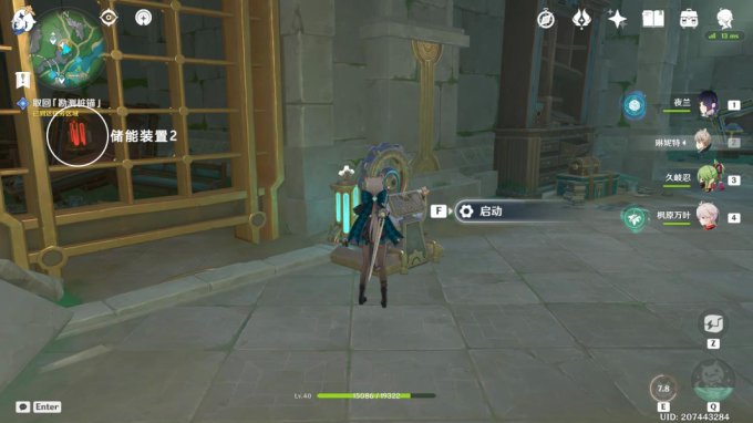 前往遗迹底部的储能装置1旁,对话后前往侧面房间