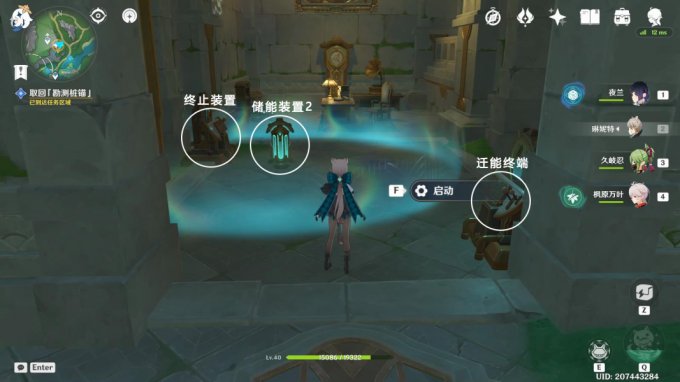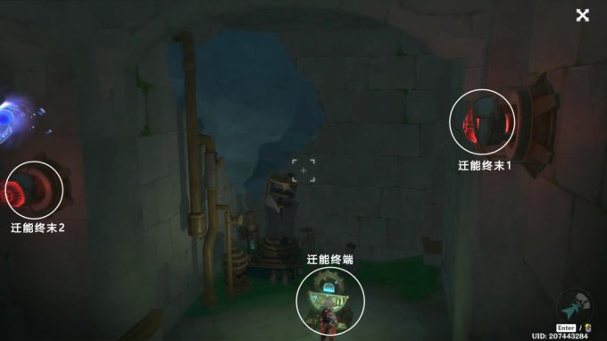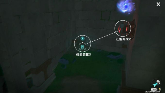 瞄准并点击储能装置3,瞄准迁能终末2,等待2秒