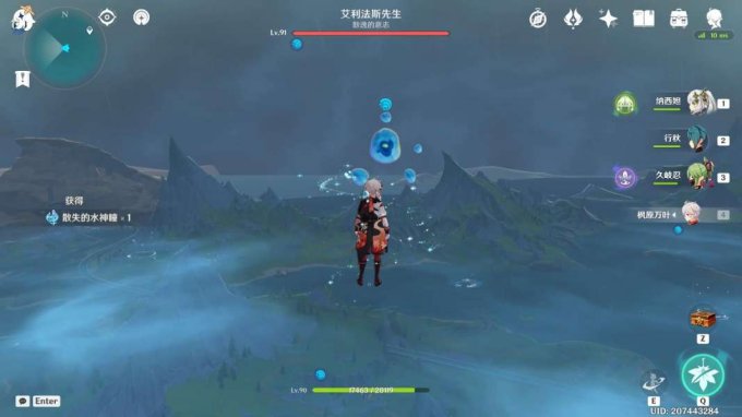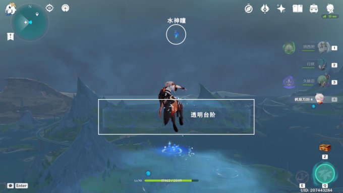 往地图的西方向走,前往空中,获得水神瞳