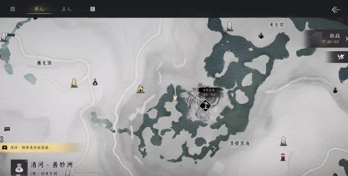 1、首先前往如图所示位置,获取任务【菩提苦海】