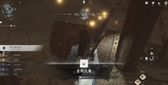 6、进入小塔打开宝箱,获得【奇术·金刚伏魔】