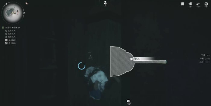 3、按【V】开启探索,可以看到三个白色的机关,全部重启后抽干水池