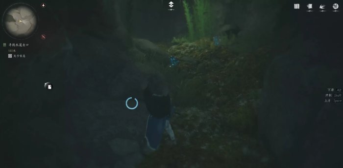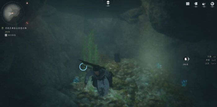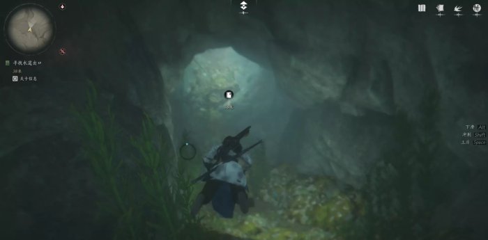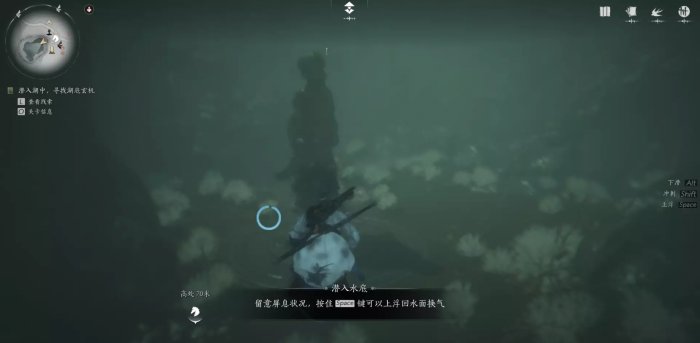 2、跳入旁边的小湖,按【ALT】键潜入湖底