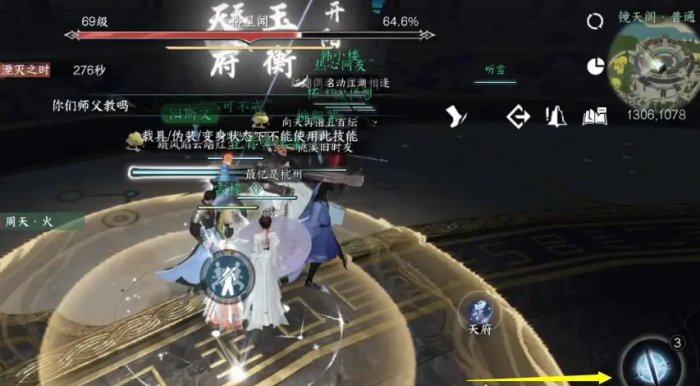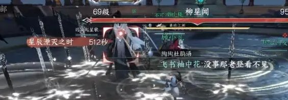 柳星闻召唤出大量剑体从天而降,攻击地面的玩家,玩家脚下会出现白色的圆圈警示,剑体会追击玩家,需要玩家一直进行移动来躲避攻击,直至所以攻击消失。