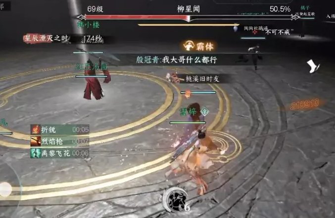 柳星闻滑一个弧度,然后向前方刺出一击,对方位内的队友造成伤害,大家可在侧面输出。