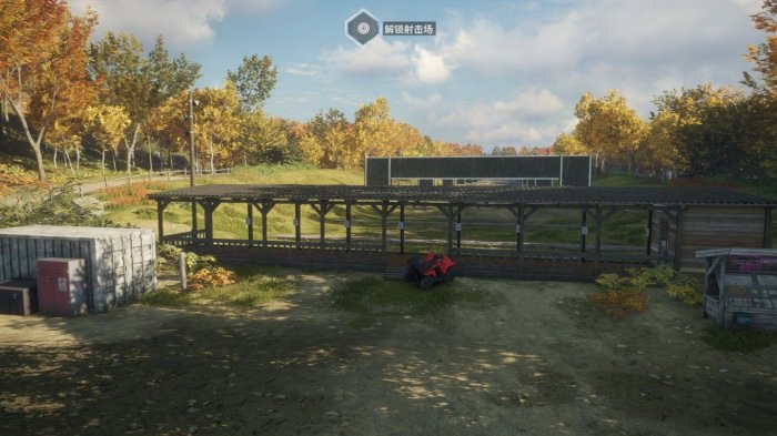 游戏内有两个靶场,第一个位于本体地图赫希费尔登的右下角。如图
