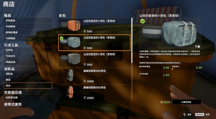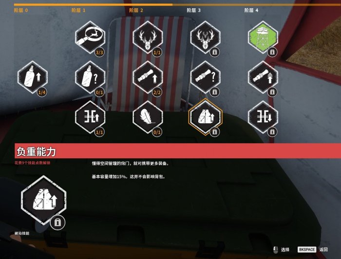 首先这游戏并不推荐携带任何增加容量的背包,因为所有背包都或多或少会使游戏角色的噪音变大和可见性提高。如果你实在要携带一个背包来带更多的东西,最多也只推荐携带容量为3,迷你小背包。