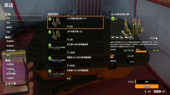 这游戏武器种类分为步枪、霰弹枪、手枪、弓弩。其中除了步枪,其他几类武器一般用的人少,或者短板明显射程短,或者不实用,或者只能作为一个补充配置。所以,狩猎大多数还是以步枪为主,所以后文推荐也是以步枪为主,其他类型武器不做讨论,或只会单独列举几个典型。