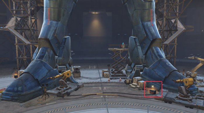 坐标(212,-288),位于机甲右脚侧边,打开宝箱可获得1个强化血清