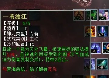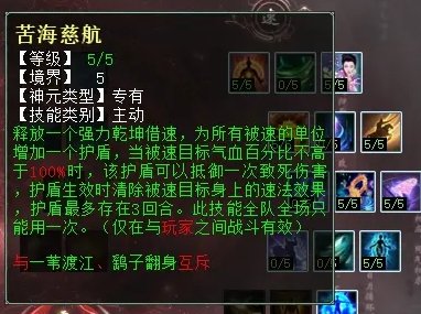 最后,三个大招分别是:鹞子翻身(PK专用,若有比自己更敏的单位,一回合结束时可最多加50点速度),一苇渡江(任务、PK通用,强力4法速,可抵抗8次伤害),苦海慈航(PK专用,强力5法速,全队获得一次抵御致死伤害护盾,持续3回合)。如果队伍是双男魔,一个可用“苦海慈航”,另一个可用“一苇渡江”,因为“苦海慈航”一队只能生效一次。而“一苇渡江”可保“作鸟”BB不死,稳“作”成功。虽然“鹞子翻身”对单男魔队伍抢敏有帮助,但它得第2回合才生效加速,所以还是不如“苦海慈航”和“一苇渡江”保命效果好。