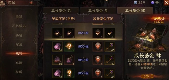 成长基金也是性价比很高,128元12个强化不朽钥匙,还给1280的永恒石,你还可以买8个闪光强化不朽钥匙,刚好是两次的10连。而且给的神殿钥匙也可以帮我们升一波属性,500%总收益确实微氪玩家值得买一下。如果运气好闪光强化不朽钥匙出了高星可交易宝石就非常舒服了。