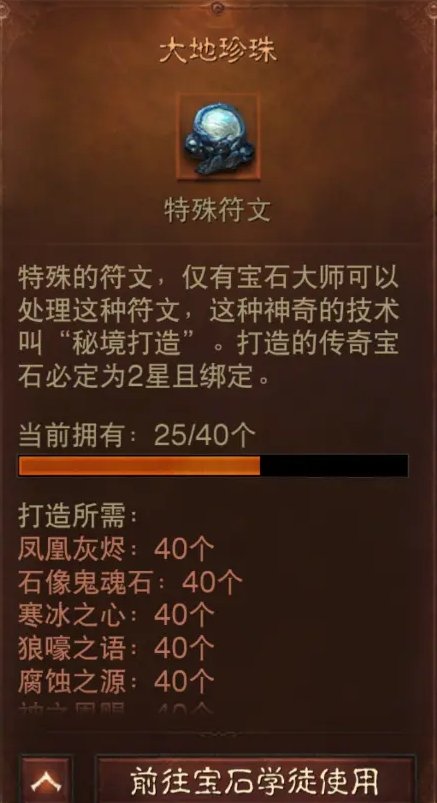 大地珍珠可以兑换一个2/5星传奇宝石,我们直接去换自己需要升级并且最贵的,比如斗志、能量等等,至于大地珍珠怎么凑齐40个。每月荣誉商人、各种限时活动都是获取大地珍珠的主要途径,当然商城也有礼包会给大地珍珠,平民玩家凑40个还是需要很长时间的。