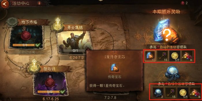 现在开了活动中心之后会额外给2个大地珍珠和10个传奇宝石,这也是我们补充传奇宝石能量的重要方式。