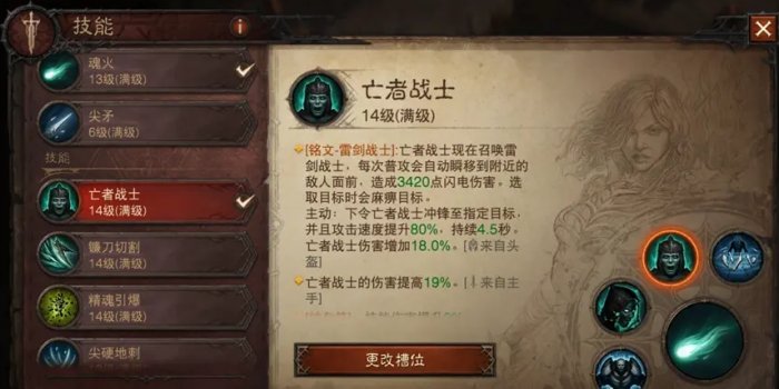 其实因为没有存在时间问题,本身亡者战士就是死灵用起来最方便的宝宝。但之前亡者战士没有合适的C伤装备。唯一C伤加成亡者战士的祭坛太过笨重,不适合移动战。所以虽然祭坛流木桩打的很高,但实战中用起来并不舒服。这次灾4新头在高输出的同时还自带50%高C伤,使雷战士的木桩输出能力远超其它铭文(如下图)。