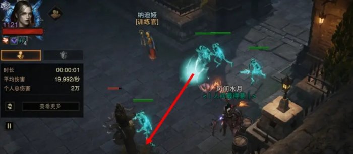 普攻:基础攻击速度1秒(参考:普通亡者战士1秒,弓手1.405秒,丧尸1.433秒),每次攻击造成(20.27%角色伤害+99)点伤害(参考:普通亡者战士16.8%+75,弓手34%+181,丧尸14.22% +82),吃普攻增伤和召唤物增伤。普攻时攻击时会瞬移到目标地点(如下图),瞬移距离约为5码。