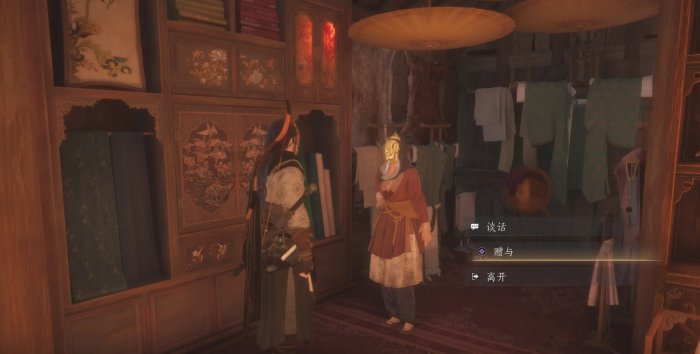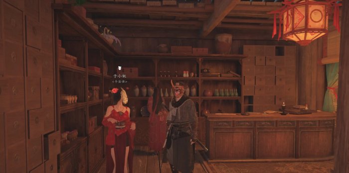 戴上面具前往半面妆与老板娘进行对话,进行乔装,选择乔装为年年。