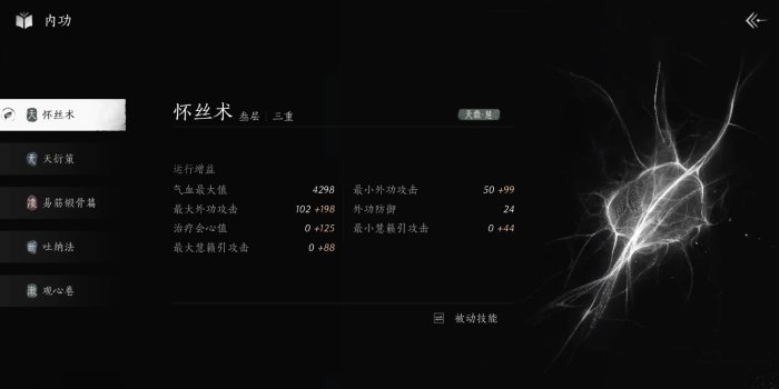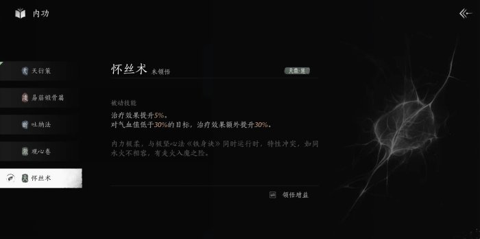 下图为怀丝术内功被动技能展示,建议奶扇玩家获取并拉满!